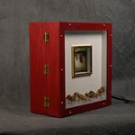 The stage and story for this assemblage was created from an open wooden box