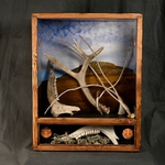 Animal bones and antler, sage, rocks and Twigs gathered on location.